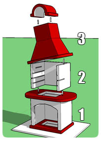 Kominek składa się z trzech elementów głównych, które po ustawieniu jeden na drugim (w kolejności od 1 do 3) stanowią całość